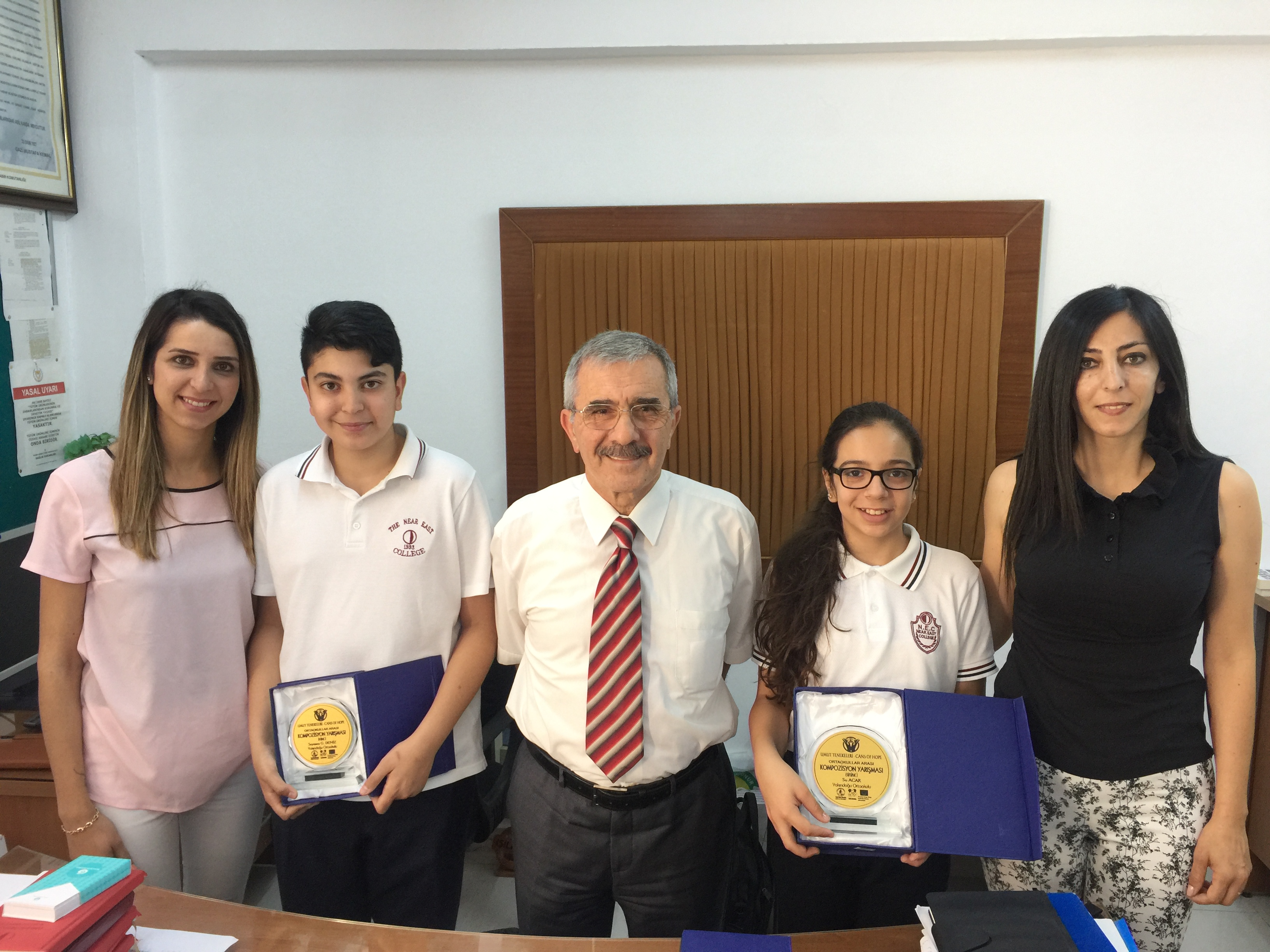 Yakın Doğu Koleji, “Yeşil Barış Hareketi’nin, Avrupa Birliği’nin Kıbrıs Sivil Toplum İş Başında Hibe Programı V” altında yürüttüğü Umut Tekneleri (Cans of Hopes) projesi kapsamında düzenlenen ortaokullararası kompozisyon yarışmasında bir birincilik bir de ikincilik elde etti.