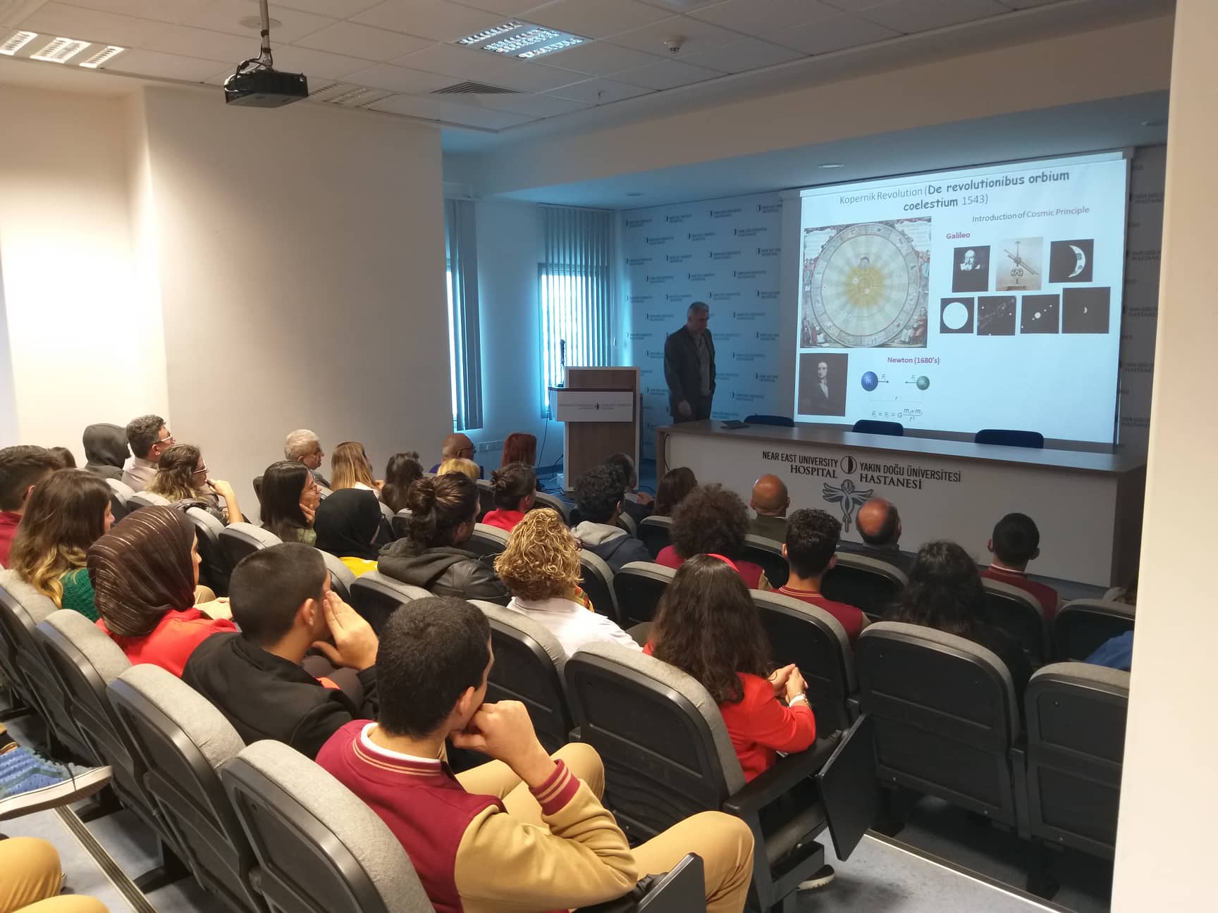 Uzun yıllar CERN’de çalışmalar yürüten İstanbul Teknik Üniversitesi Fizik Mühendisliği Bölümü öğretim üyesi Prof. Dr. Kerem Cankoçak, Deneysel Sağlık Bilimleri Araştırma Merkezi’nin (DESAM) düzenlediği periyodik konferanslar dizisi kapsamında Yakın Doğu Koleji öğrencilerine ‘Dünyayı Anlamak İçin Bilim’ başlıklı konferans verdi.