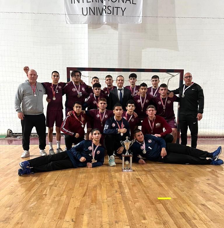 Near East College Boys’ Handball Team, which trained for the championship with its teachers Mustafa Özpolili and Gültekin Gülman, completed the group stages with two wins and one loss and made its way to the semi-finals. Near East College MenBoys’ Handball Team, consisting of Fikri Asal, Kıvanç Buba, Deran Çöllo, Efe Sıddık, Halil Gazelci, Sami Karasalih, Demir Çöllo, Mehmet Kurtoğlu, Ahmet Pampuroğluları, Alp Paça, Efe Özaltay, Hasan Bensel, Mustafa Hısım, Batu Adalıer, Arif Savoğlu, Şükrü Sağlamer, and Hasan Hidayet who are 9th, 10th, 11th and 12th year students of Near East College, defeated Nicosia Turkish High School 24-23 in the semi-finals and became the opponent of Hala Sultan Theological College in the final.