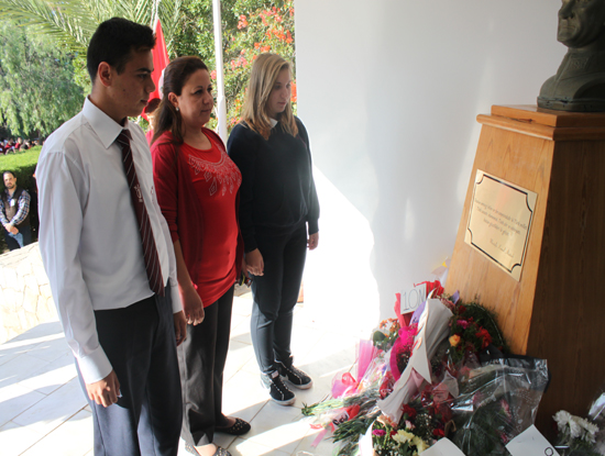 The ceremonies began by observing a minute’s silence at 9.05 -the hour the Turkish leader died 76 years ago. Then groups of students from each class laid flowers at the Atatürk busts. History teachers Bahar Özada from the middle school and Ayten Saydam from the GCE building delivered speeches to underline the significance of the day.