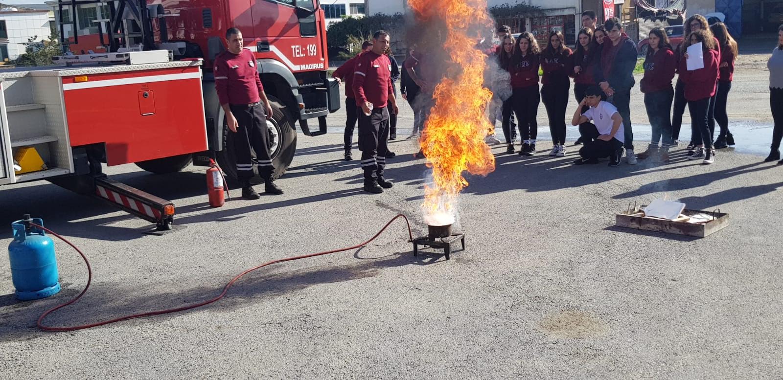 Öğrenciler ile yakından ilgilenen itfaiye memurları, özellikle ev yangınlarının sebepleri ve alınacak önlemler konusu üzerinde durdular. Birkaç yangın çeşidini örnekleyerek söndürülmesiyle ilgili öğrencilerle birlikte uygulamalı tatbikat yapan itfaiye memurları, kazalarda bireyleri nasıl kurtardıklarını anlattı.