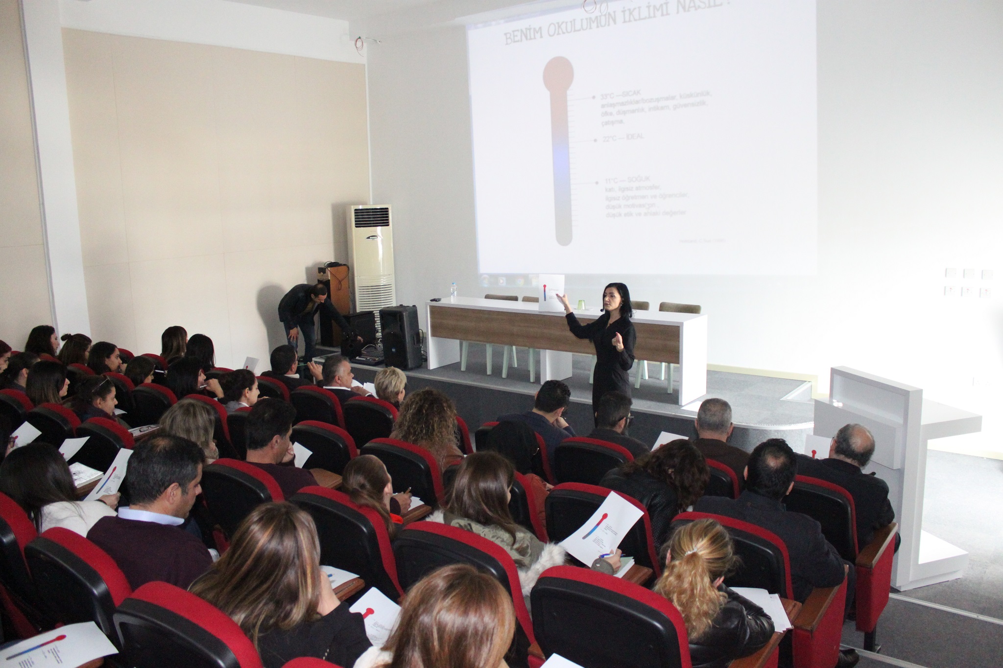 Assoc. Prof. Dr. Aslı Bugay Sökmez in her speech emphasized that schools, like individuals, have a personality, so that no school is the same as the other, and that the schools differ widely in terms of student and teacher behavior, parental participation, social and cultural values, moral characteristics and interpersonal skills, and the cumulative effect of all these factors form the school climate.