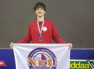 Yine Yakın Doğu Koleji’nin Dr. Suat Günsel Burs’lu 6’ıncı sınıf öğrencilerinden Erten Kasımoğlu ise Samsun’da düzenlenen aynı turnuvada 50 metre serbest kategorisinde 00.33.14 ve 100 metre kategorisinde ise 01.14.49’lik dereceleriyle Türkiye A1 barajını geçerek iki bronz madalya almaya hak kazandı.