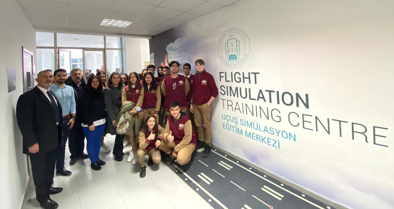 İlk olarak Pilotaj ve Uçak Mühendisliği Bölümünü gezen öğrenciler Uçuş Simülasyonunda uçağın kokpitini inceleyerek, uçuş simülatörünü kullandı. Öğrenciler simülatör eşliğinde Havalimanından kalkış yapıp, uçak kontrol sistemlerini kullanarak gerçekçi bir uçuş deneyimi yaşadı. Gerçek bir kokpit ortamını, acil durum adımlarının nasıl yapıldığını, uçağın nasıl güvenle uçurulduğunu ve yere indirildiğini, uçaktaki bazı materyallerin isimlerini öğrendiler.