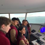 Daha sonra Denizcilik Fakültesinde yer alan gemi simülasyon odasını ziyaret eden öğrenciler dümene geçerek bir gemiye çıktıkları zaman yapması gereken her türlü hareket ve manevralar ile harita okuma, seyir, demirleme, yanaşma gibi birçok deneyimi yaşadılar. Gemi ve çalışma koşullarını simülatörle gören öğrenciler, geminin çalışma prensiplerini tecrübe edindiler.
