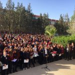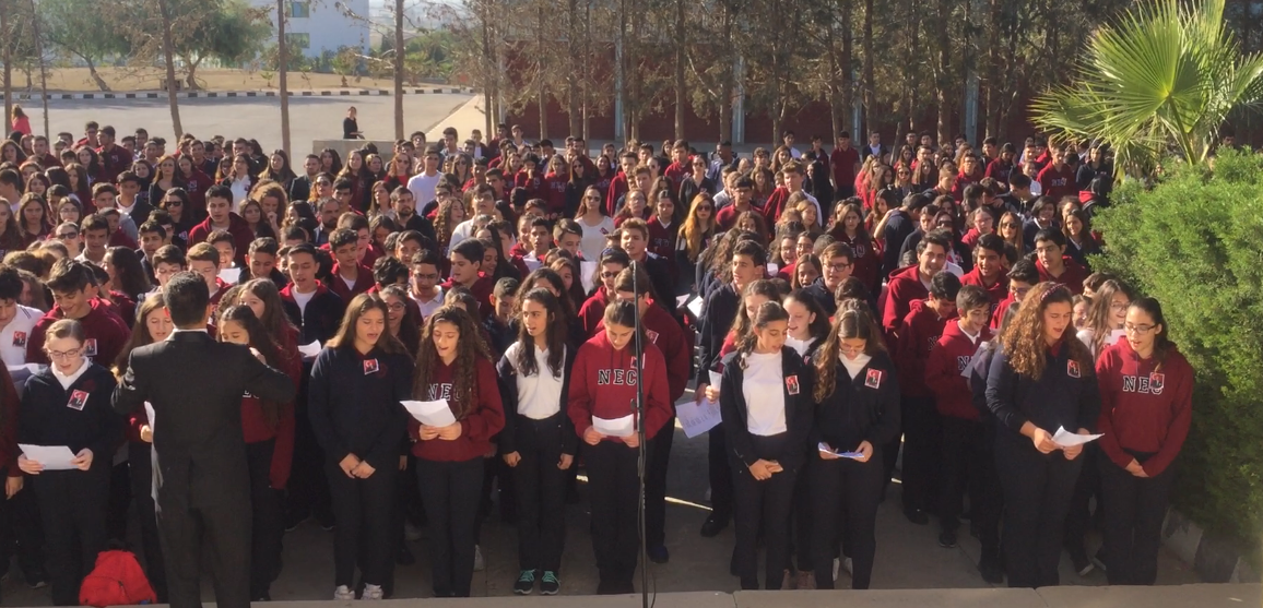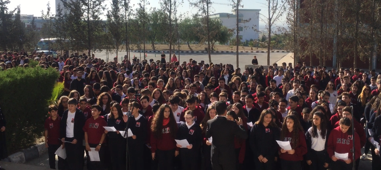 According to the press release issued by the Directorate of Press and Public Relations of Near East University, speeches on the importance of the day were made; yearning poems and poems indicating respect to Atatürk were read; later to be followed by the marches sang by the school choir. Furthermore, the students read “Atatürk’ün Gençliğe Hitabesi” altogether which excited everyone with pride and joy.