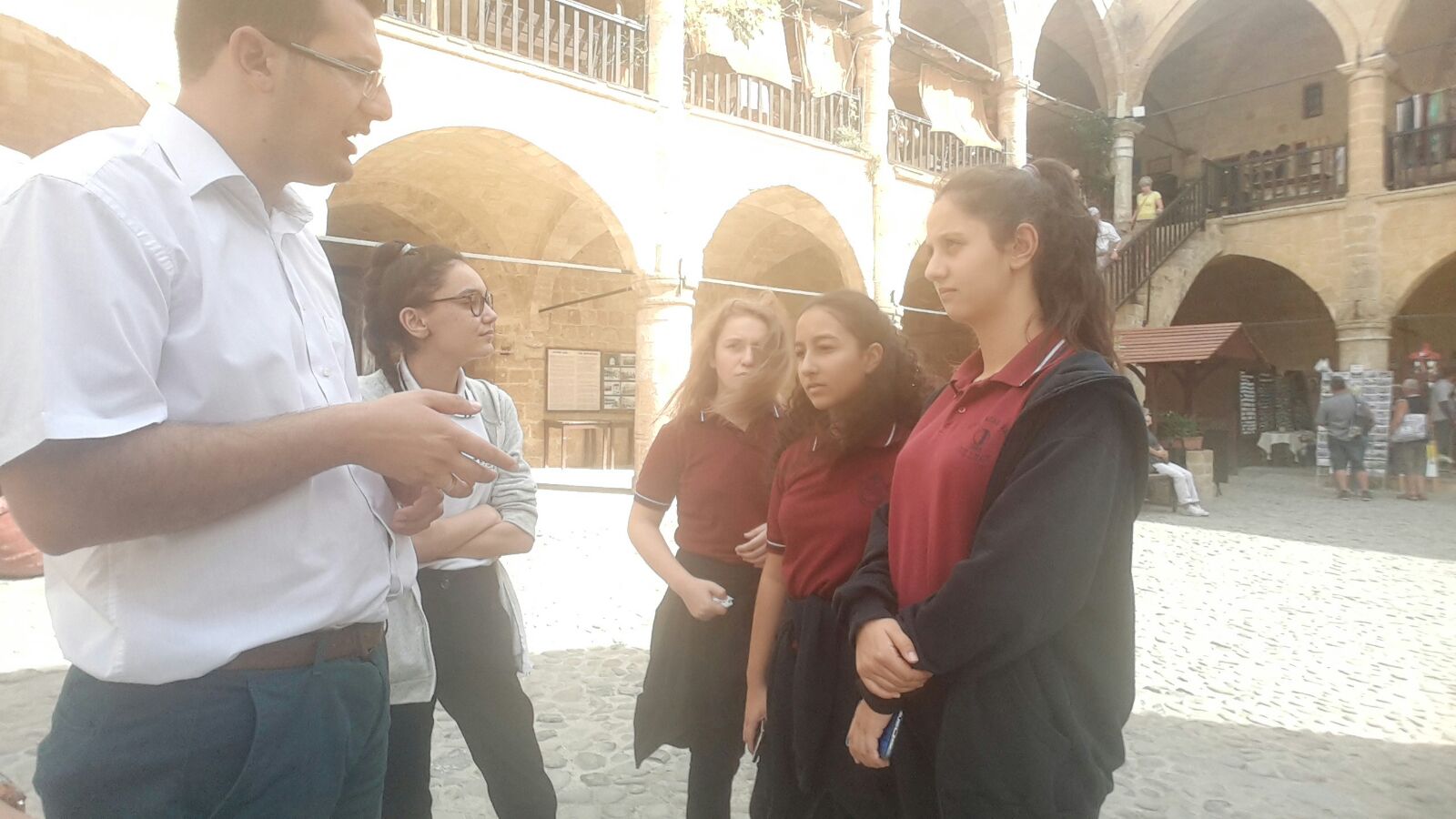 İlk olarak Büyük Han’ı ziyaret eden öğrenciler, Büyük Han’ın, Osmanlı’nın Kıbrıs adasını fethetmesinin ardından Muzaffer Paşa tarafından 1572’de yaptırıldığını öğrendi. Geziye katılan sorumlu tarih öğretmenleri tarafından öğrencilere, Osmanlı Devleti’nin ilk başkenti olan Bursa’da bulunan Koza Hanı örnek alınarak yapılan Büyük Han’ın, alt kısmının genellikle hayvanlarının barınmaları için kullanılırken üst odalarında konaklama amaçlı kullanıldığını, İngiliz sömürge yönetiminin Büyük Han’ı belli bir süre hapishane olarak kullandığını sonrasında ise kimsesizlerin barınmak için kullandığı bir yer olduğunu anlattılar. Öğrenciler, Büyük Han’ın 2002 yılında restore edilerek kültür sanat merkezi olarak günümüzde işlev gördüğü bilgisini de aldılar.