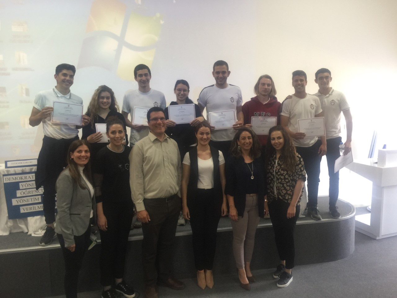 Yakın Doğu Koleji Oditoryumu’nda gerçekleşen etkinlikte öğrenci grupları slaytlar eşliğinde dünya ülkelerinin eğitim sistemlerinden örnekler vererek tartıştılar. Öğrencilerin demokrasiye, insan haklarına, eğitim sistemine ve okul iklimine atıfta bulundular.