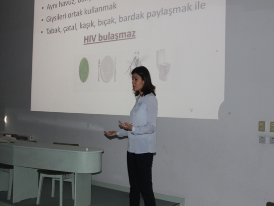 Gençlerin AIDS’ten korunmak için azami dikkat ve itina göstermesi gerektiğini, alınması gereken önlemleri anlatan ve HIV vakalarıyla ilgili bilgiler veren Dr. Selin Bardak Özcem, KKTC, T.C. ve dünyadaki HIV vakalarıyla ilgili bilgileri istatistikler üzerinde verirken; bunları görsel sunumlarla da destekledi.