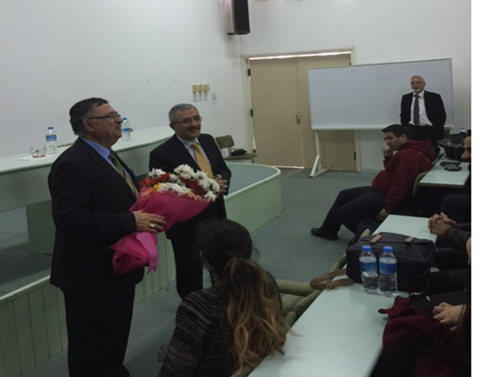 Yakın Doğu Üniversitesi Türk Dili ve Edebiyatı Bölümü Öğretim Üyesi Yrd.Doç.Dr. Erdoğan Saraçoğlu 1 Nisan 2015 Çarşamba günü Yakın Doğu Koleji ÖSS Birimi 12. sınıf öğrencileriyle Yakın Doğu Koleji Oditoryumunda bir araya geldi.